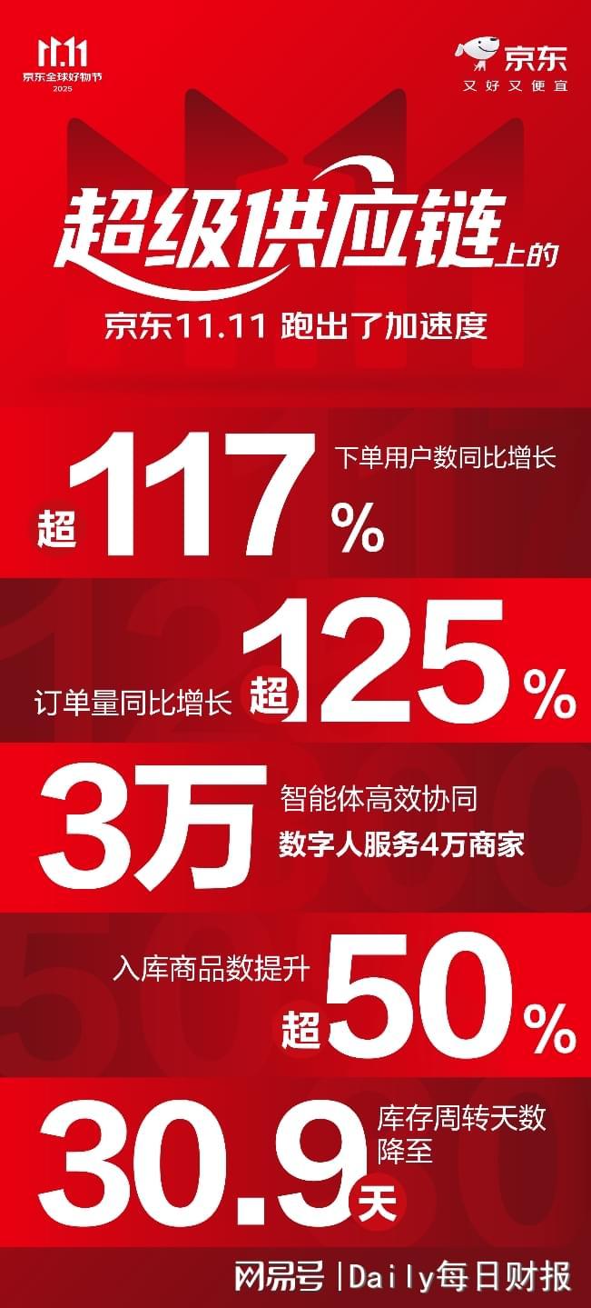 pg电子平台登录入口下单用户数超117% 订单量超125% 京东1111超级供应链跑出加速度又好又便宜的11.11只在京东!10月30日晚8点,京东11.11开启“百亿补贴日”,众多优质商品直接降价销售,迅速点燃消费者热情。10月30日晚8点至10月31日19:59,京东11.11下单用户数同比增长超117%、订单量同比增长超125%,由自营秒送仓发出的商品,最快5分钟已为客户送达。 近24小时,3C数码整体C2M产品成交额同比增长超50%、家电家居送装一体订单同比增长6倍、京东超市打造的不同品牌组套的“洗护小美盒”销量破万单,京东生鲜源头直发商品成交单量同比增长超180%,线上下单-货到门店-享受专业服务的京东养车门店订单量同比增长超200%,这个京东11.11,跨境进口海鲜产品送达消费者时间平均缩短30%。 今年京东11.11重磅新品中,京东专供新品成交额是去年的5倍。休闲食品、酒类、电脑办公等品类重磅新品成交额同比大幅增长,分别为832%、732%、115%。京东打造新品全链路营销模式,依托JDIC(京东新品创新中心)提前介入品牌的研发流程,帮助其优化新品方向,打造出更符合用户需求的京东专供新品,并通过站内外全渠道推广,帮助品牌提升新品打爆效率,在大促期间加速推爆。 今年的京东11.11,有更多创新业态加入并取得亮眼成绩,京东旅行酒店间夜量同比增长7.3倍、机票出票张数同比增长4.5倍;七鲜小厨流量环比增长35%,火爆流量持续带动周边品质餐饮商家单量增长,七鲜美食MALL11.11期间外卖单量对比开业期间增长100%,京东自有品牌七鲜私厨用户数量涨势迅猛,环比增长500%,店铺粉丝量迅速突破12万。 从超十种创新业态获得爆发式增长,到核心业务板块在送装一体、源头直发、线下业态等用户体验上的创新引领,皆源于京东二十多年来深耕锤炼的供应链基础设施能力。融合AI产业应用与物流科技,携手线上线下合作伙伴共同打造的“超级供应链”,正助力行业健康发展、提升中国品牌全球竞争力、创造巨大社会价值。 基于这张“超级供应链”,京东11.11跑出了新的加速度。这个京东11.11,入库商品数同比增长超50%,在商品丰富度大幅提升的同时,运营效率依然持续提升,大促期间库存周转天数下降至30.9天,降幅超20%。与此同时,通过仓网加密与库存下沉,京东持续加速偏远地区用户时效体验,这个京东11.11,95%自营订单、87%乡镇和街道可24小时内送达,新疆、西藏等地45.5%订单实现当日下单次日送达,次日达水平较行业水平高出40%。京东物流“超脑大模型2.0”及以“狼族”机器人为代表的京东物流机器人军团,创造中国11.11物流服务最科技的保障能力。京东物流超脑2.0应用场景近百个,让拣货效率提升10%、一线%,机器人军团中仅“智狼”机器人仓出库累计超5000万件,居世界第一。 从内部协同到品牌商家协同,京东将技术创新作为“超级供应链”的核心动力,11.11期间,京东内部运行的智能体数量已突破3万个,数字人服务4万商家,应用AI发品的商家可以一键完成商品发布,不仅商品信息覆盖率从40%跃升至80%,还节省了80%人工补充时间,实现高效运营。通过费用补贴以及AI智能工具等服务保障举措,持续助力商家销售增长并节省经营成本超5000万元,将“偏远地区集运服务”范围从新疆拓展至青海、西藏、内蒙、甘肃、宁夏五地,助力相关地区订单实现爆发式增长,今年增速已达去年同期的三倍。 依靠京东强大的供应链体系和自营模式核心优势,京东致力于打造一个“没有中间商、不依赖人设、只关注真实价格和品质”的直播新模式,以此来提升用户的购物体验。京东直播将采销、达人等专业人士推向直播前台,依托他们的专业知识与行业经验,为消费者精选“又好又便宜”的商品。京东11.11期间,京东采销直播订单量同比增长超293%,达人直播订单量同比增长超679%,商家直播订单量同比增长187%。 更丰富的商品、更高的运营效率、更快的销售增长,“超级供应链”上的京东11.11跑出了加速度。“超级供应链”有助于破除当前行业内卷的顽疾和增长的瓶颈,让商家不再为流量付出高昂的代价,是提升供应链韧性的重大创新,是共生共享商业价值重塑和提升的重大创新,更是服务中国实体经济的重大创新。 近24小时,大屏AI手机销量破10万台,搭载50系显卡的高端游戏本销量破万台,3C数码整体C2M产品成交额同比增长超50%。京东11.11期间,京东上销售的大屏AI手机超30%为C2M定制,游戏笔记本超50%为C2M定制。依托超级供应链,京东通过C2M反向定制能力构建起“需求洞察-研发生产-市场销售”的闭环链路,携手品牌共建新品,让其成为品类创新与销量增长的核心驱动力。 此外,超15个手机品牌成交额同比增长超150%,50%用户使用以旧换新选购iPhone;3C数码趋势品类增长显著,智能机器人同比增长4倍、高端轻薄本同比增长100%。小平板、相机配件同比增长10倍,240Hz+超高刷电竞显示器同比增长250%,激光打印机同比增长130%,文具IP礼盒、动漫类图书同比增长150%,京补合约成交量同比增长100%。3C数码延保服务产品成交量同比增长3倍。3C数码以旧换新用户量同比增长100%。超3500个3C数码品牌实现企业销售同比增长100%。 京东在家电行业多年深耕,与品牌一起打造的精准洞察、敏捷开发、高效营销的敏捷供应链能力让新品效率一骑绝尘。近24小时,京东家电家居超3000个品牌增长超100%;家电家居“闪电新品”成交额同比增长150%,海尔云溪4.0洗衣机、OOUGO