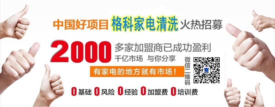 格科家电清洗品牌:创立于1999年,到目前为止更是为数不多的家电清洗产品生产厂家(专业生产家用电器清洗、保养的清洗类产品,格科家电清洗产品不仅拥有国家批准各类证件,还有各种家电清洗产品一一俱全的检测报告-SGS质检),到2016年止格科已经为美的、苏泊尔、老板、九阳等全国150多家知名公司提供专用清洁产品 。是国内专业的家电清洗产品OEM贴牌供应商。格科集家电清洗的服务和家电清洗产品的销售于一体,17年以来已经在家电清洗方面积累了丰厚的经验。现面向全国诚邀有实力的公司、家电生产厂家(提供OEM)、家电大卖场、家电专卖店、家电经销商和个体经营者等加盟合作。格科提供给代理商不仅是全系列清洗剂、清洗设备,最重要的是做家电清洗业务所需要的宣传促销用品、技术支持、市场指导。全力支持代理商在所在区县批发零售格科的系列产品,以及从事专业的上门清洗家用电器服务。格科总部以实现双赢的合作目的,实现加盟一家成功一家为宗旨,携手共同打造家电清洗服务连锁品牌!